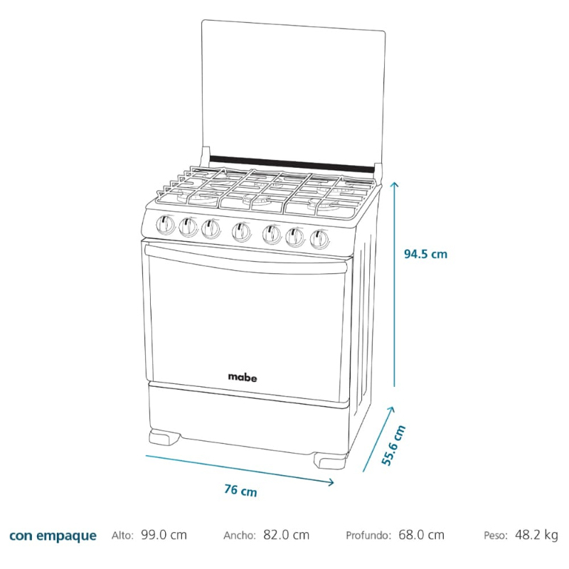 La cocina a gas EM7630FX0 de Mabe tiene las siguientes características: